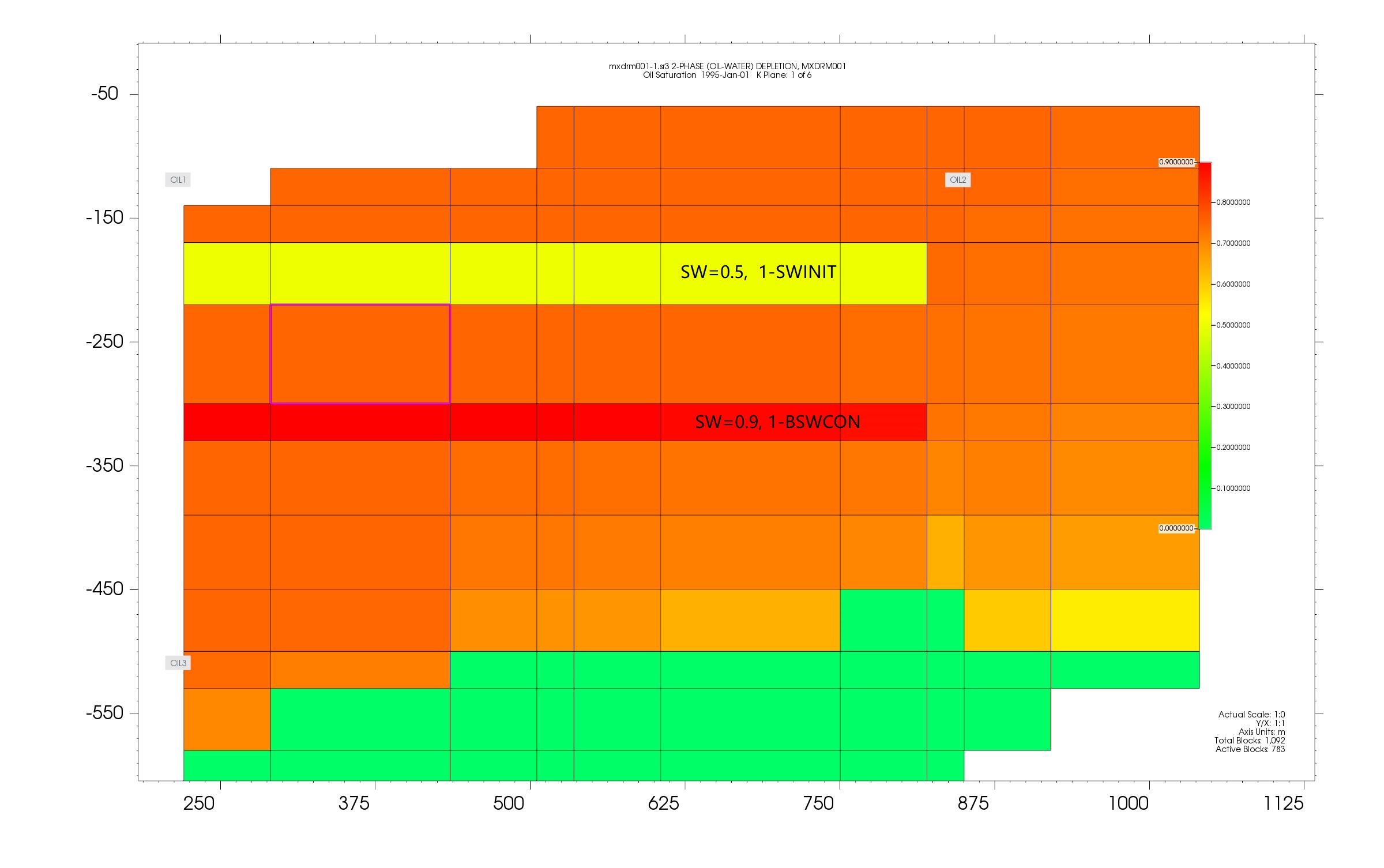 *BSWCON也可以改变初始含水饱和度,但其需要相渗部分定义,而*SWINIT需要在初始化部分定义,例如,以IMEX自带算例mxdrm001.dat:为例,分别修改BSWCON和SWINIT: