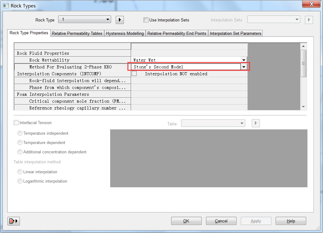 Builder → Rock Fluid → Rock Type Properties→ Method For Evaluating 2-Phase KRO
