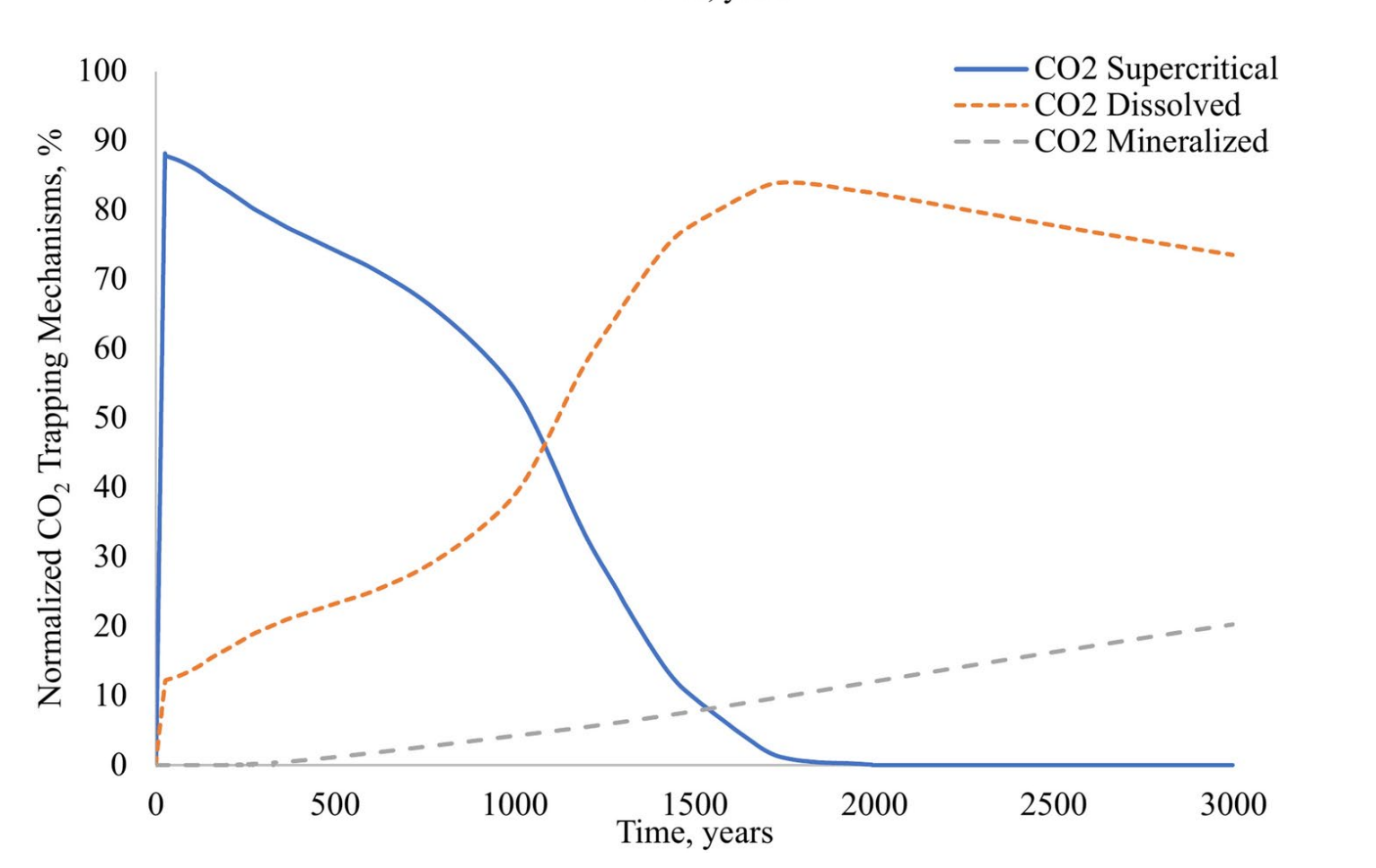 - 注入期:结构封存(88%)和溶解封存(12%)主导。