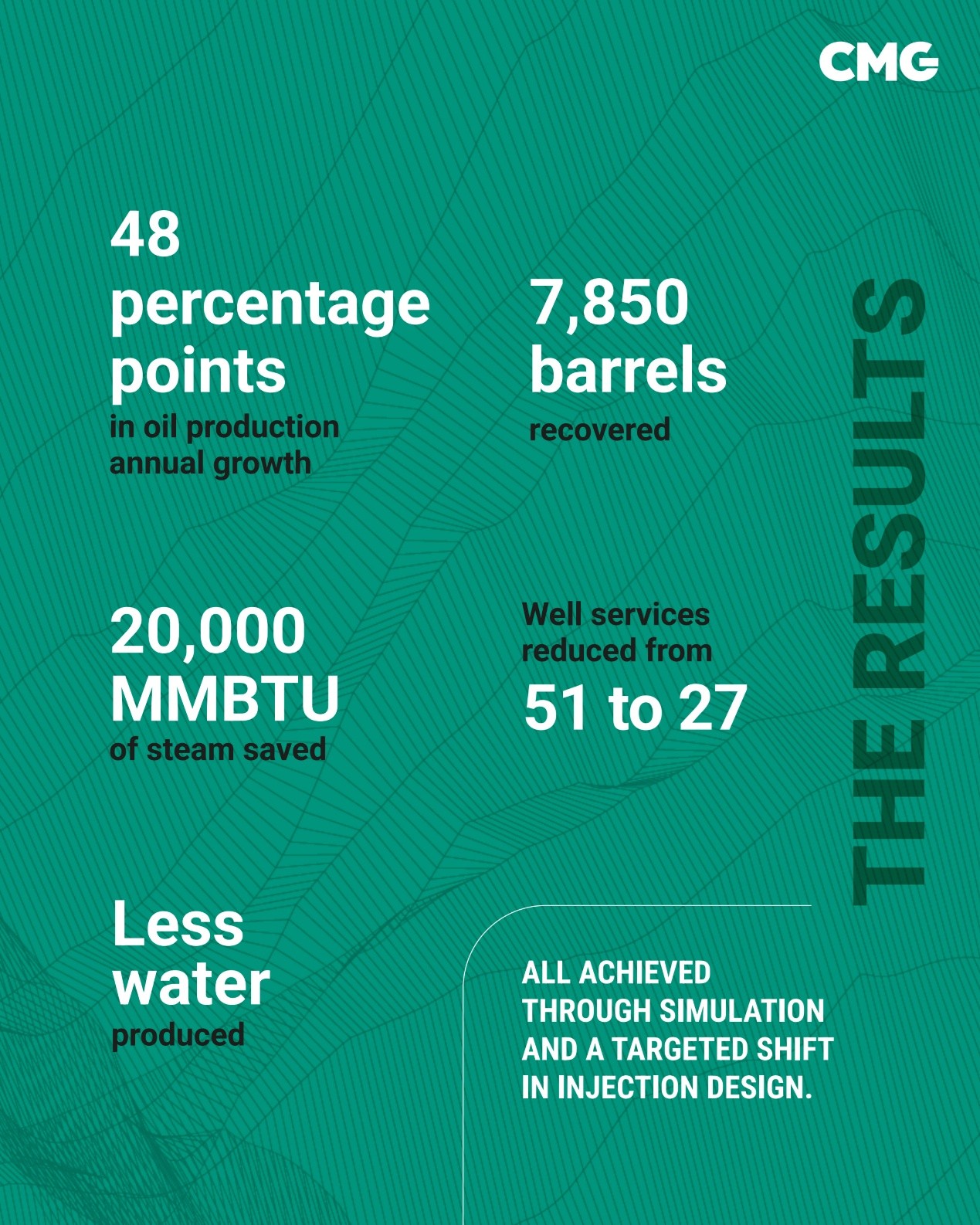 哥伦比亚一个重油油田的生产团队遇到了严峻的挑战,其采用的常规蒸汽吞吐(CSS)技术已达到极限,表现为单井产量骤降、含水率上升和地层压力过低,单纯增加蒸汽注入量或钻井数量已无法解决问题。为此团队利用CMG数值模拟软件测试了多种方案,最终决定转向间歇式蒸汽吞吐的新策略。
