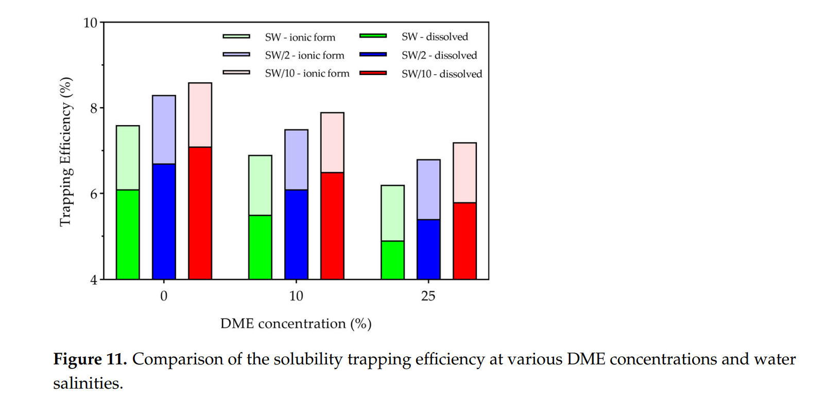 - 波及效率:DME 使 CO₂ 流度降低、重力超覆减弱, 驱替面积提高 5–8 %;LSW 影响 <1 %。