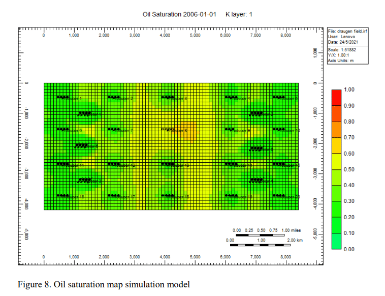 - 最终状态:模拟结束时,整个油藏平均含油饱和度为23%,约等于油田残余油饱和度。