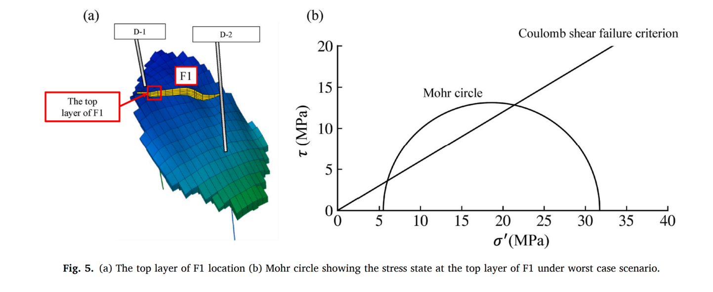 - 地力学耦合: 结合Mohr-Coulomb准则进行断层稳定性分析,通过GEM模拟获取孔隙压力变化,评估断层滑移风险